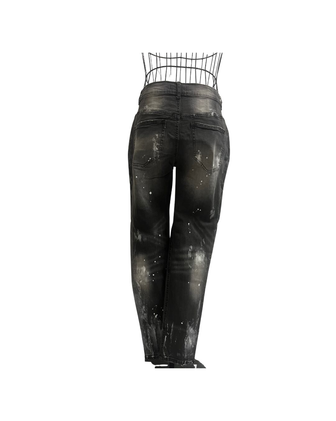 【ダメージペンキ加工テーパードデニムパンツ】
