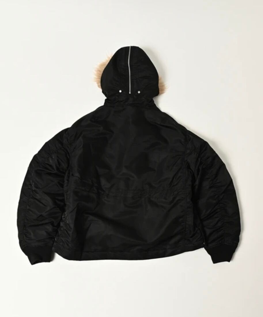 N2Bをベースにしつつ、裾のリブをなくし、サイドには開け閉めできるスリット、の内側には調整できるコードを配置。。